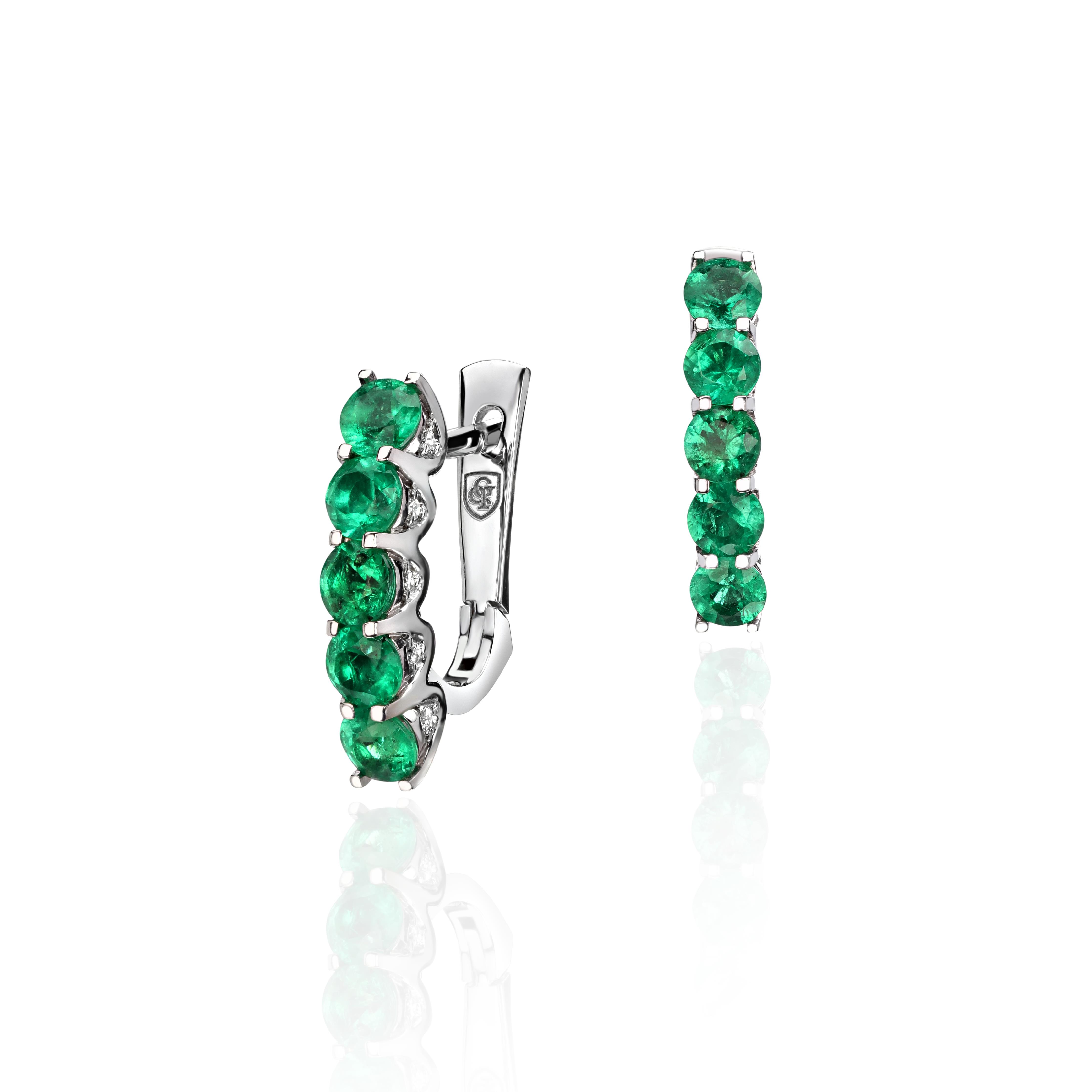 Серьги из белого золота 585 пробы с изумрудами и бриллиантами 01С6213382-1