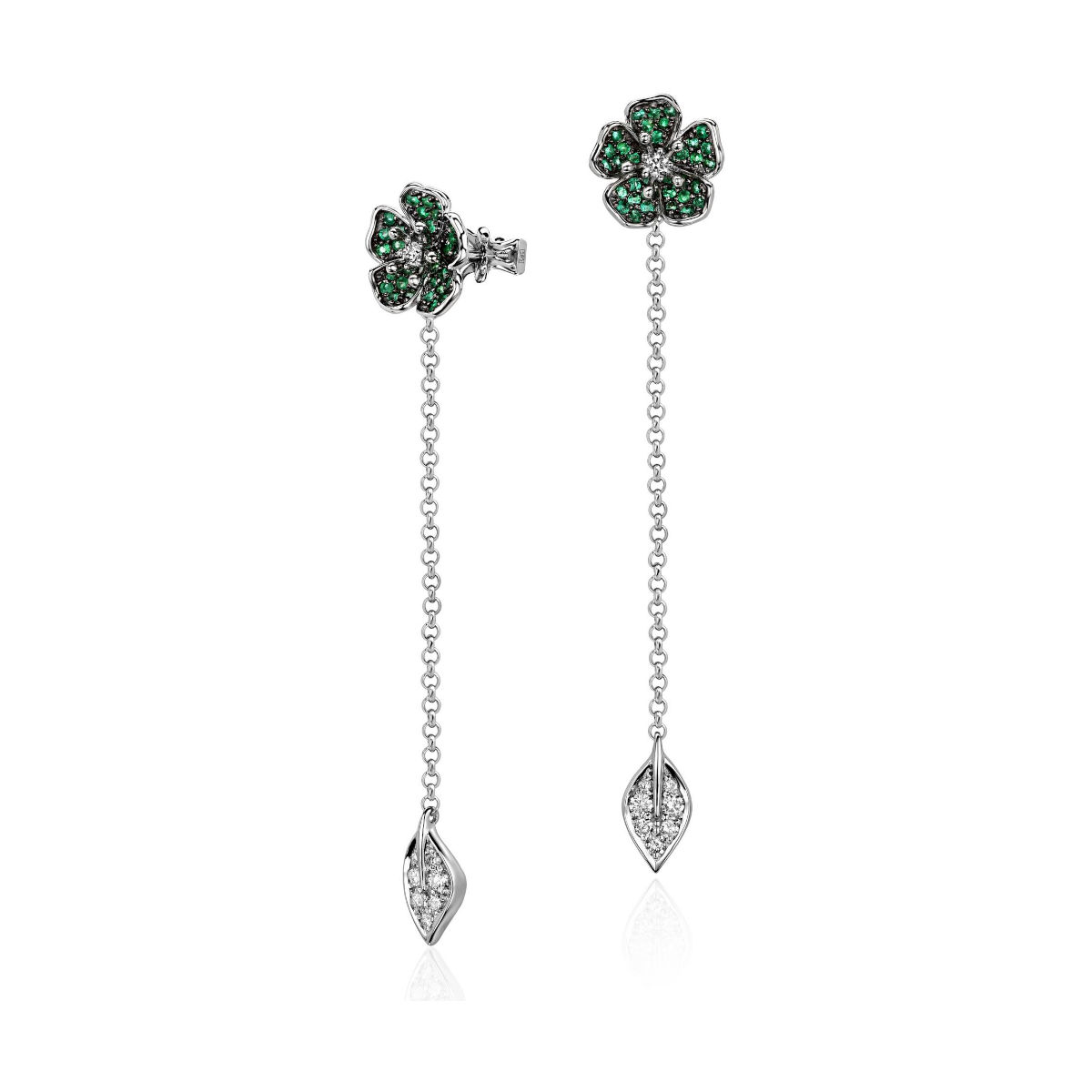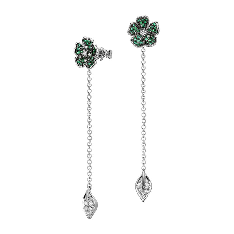Серьги из белого золота 585 пробы с бриллиантами и изумрудами 01С6214577-9