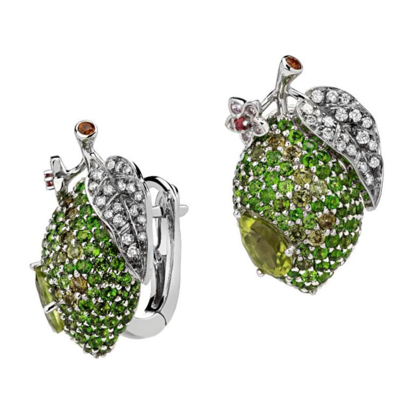 Серьги из белого золота 585 пробы с бриллиантами, сапфирами, турмалинами, хризолитами и хромдиопсидами 01С6213480-7