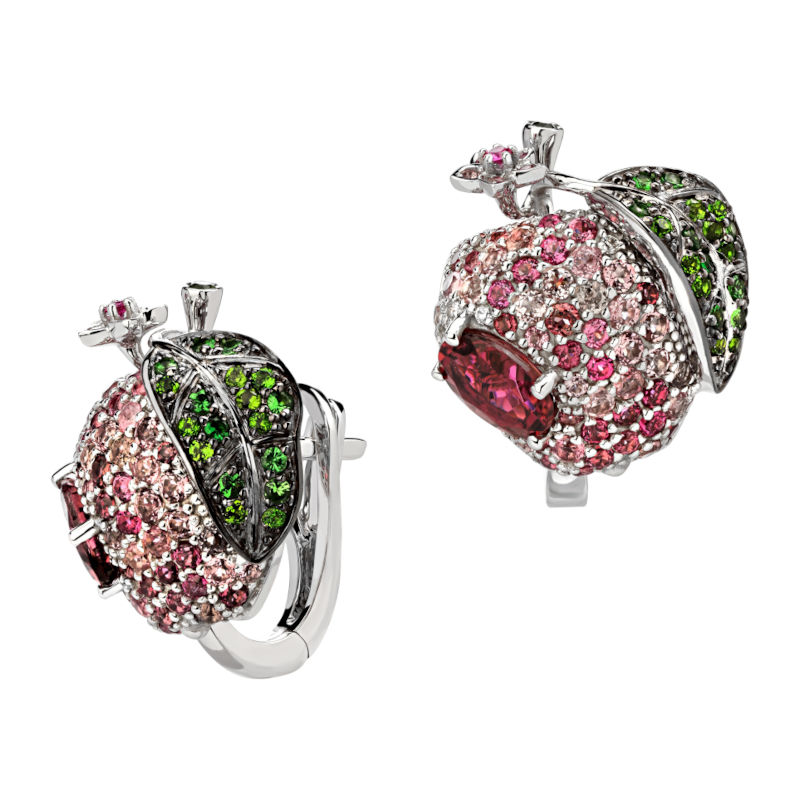 Серьги из белого золота 585 пробы с бриллиантами, тсаворитами, турмалинами, хромдиопсидами, рубинами 01С6213481-4