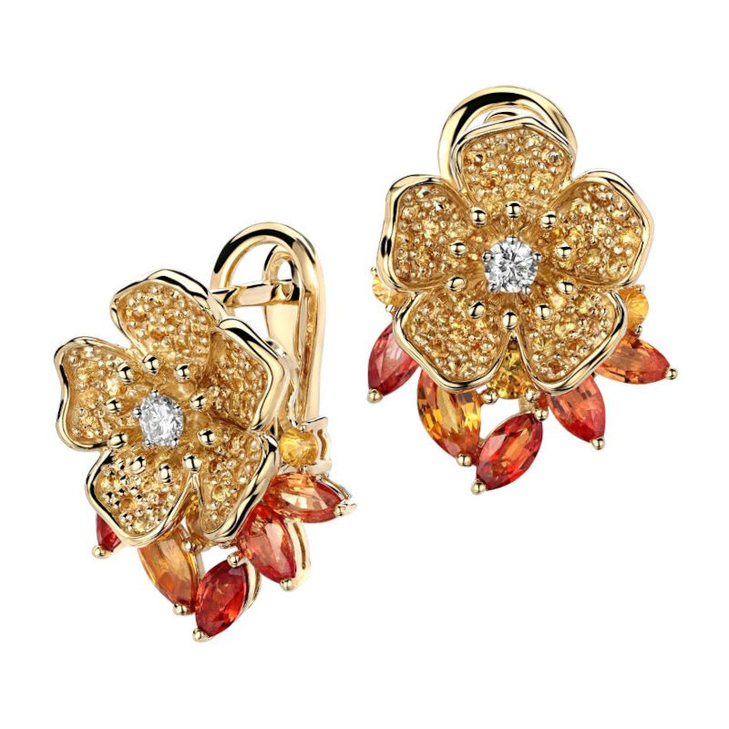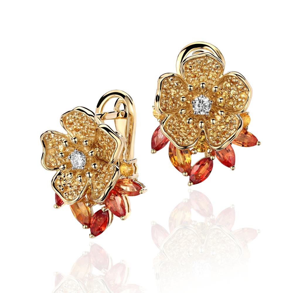 Серьги из желтого золота 585 пробы с бриллиантами и сапфирами 01С6314574-3
