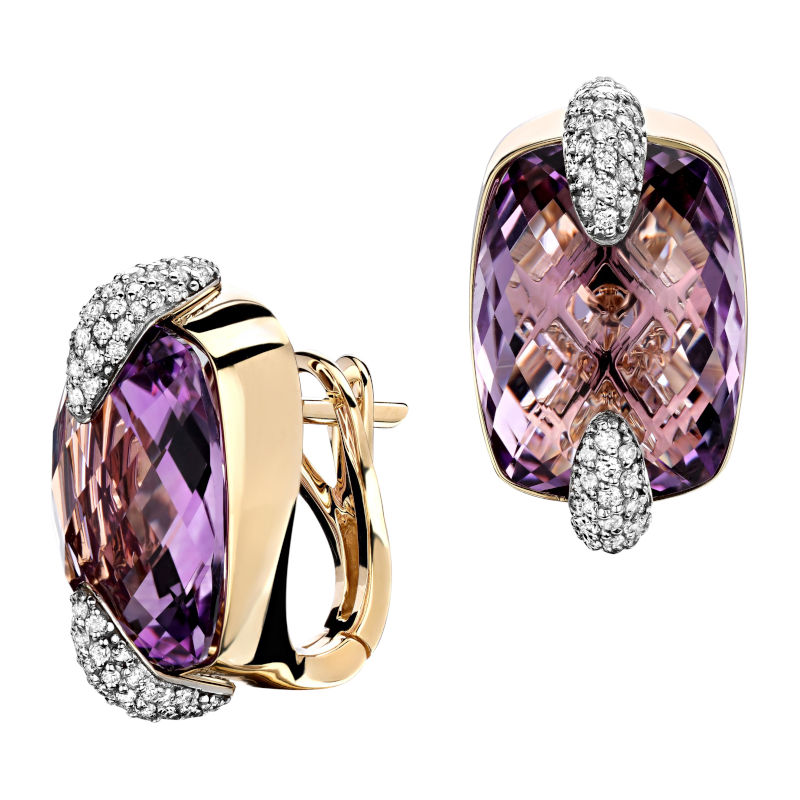 Серьги из комбинированного золота 585 пробы с аметистами и бриллиантами 01С6615202Ж-1