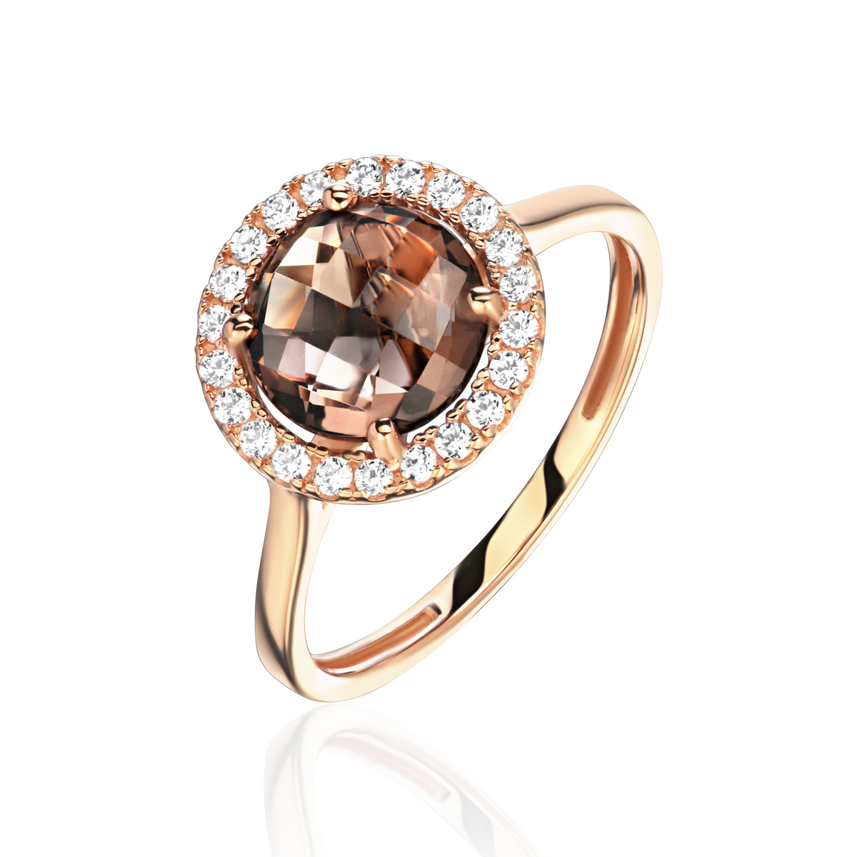 Кольцо из красного золота 585 пробы с раух-топазом и фианитами 01К3115411-1