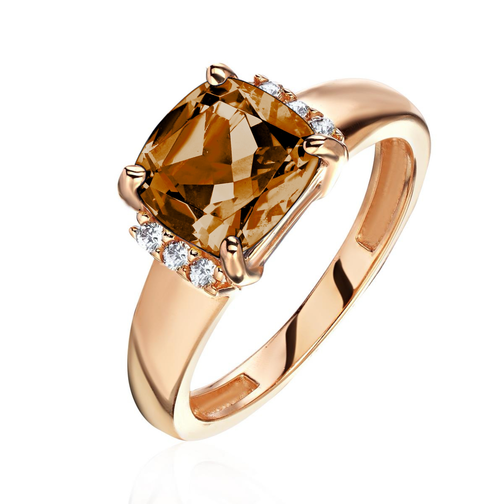 Кольцо из красного золота 585 пробы с раух-топазом и фианитами 01К3115472-4