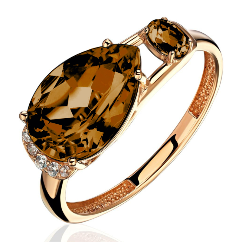 Кольцо из красного золота 585 пробы с раух-топазами и фианитами 01К3115594-4