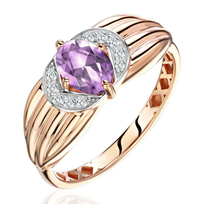 Кольцо из красного золота 585 пробы с аметистом и фианитами 01К3115794Р-1