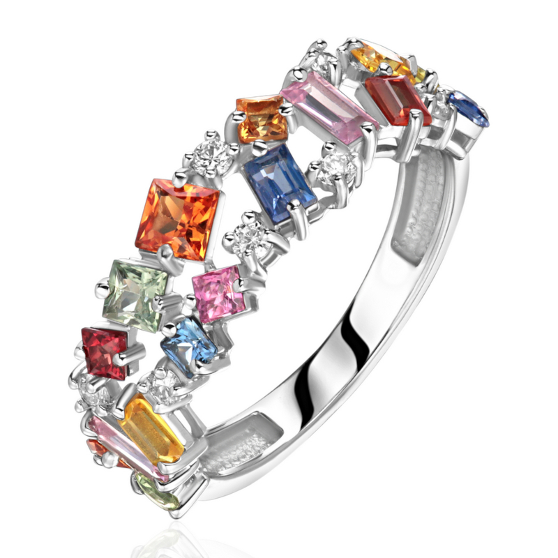 Кольцо из белого золота 585 пробы с сапфирами и бриллиантами 01К6215500-1