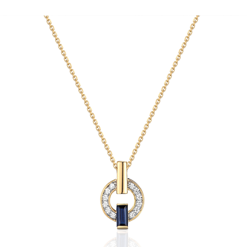 Колье из желтого золота 585 пробы с наносапфиром и фианитами 01Л232314-1