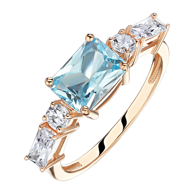 Кольцо из красного золота 585 пробы с топазом и фианитами 01К3115375-2