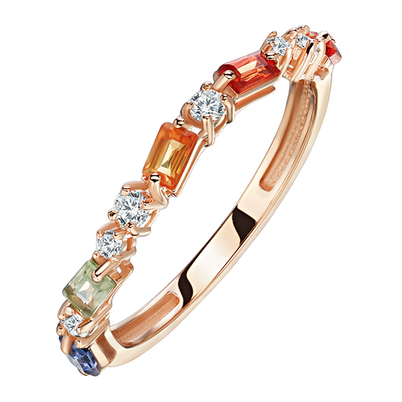 Кольцо из красного золота 585 пробы с сапфирами и бриллиантами 01К6115509-2