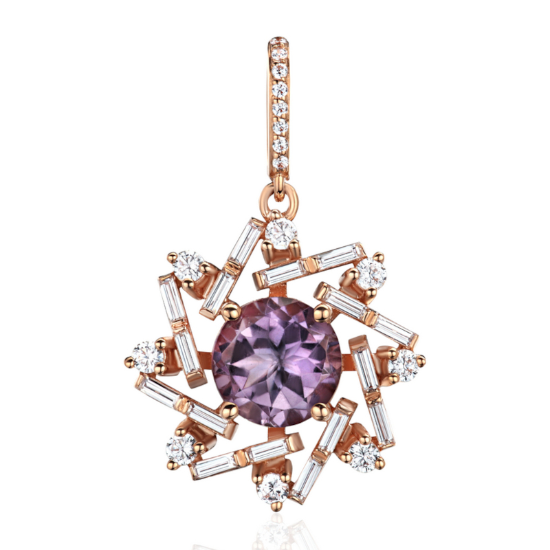 Подвеска из красного золота 585 пробы с аметистом и фианитами 01П3115419-1