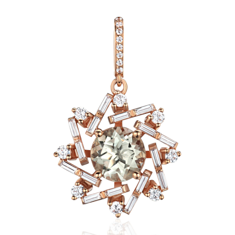 Подвеска из красного золота 585 пробы с празиолитом и фианитами 01П3115419-2