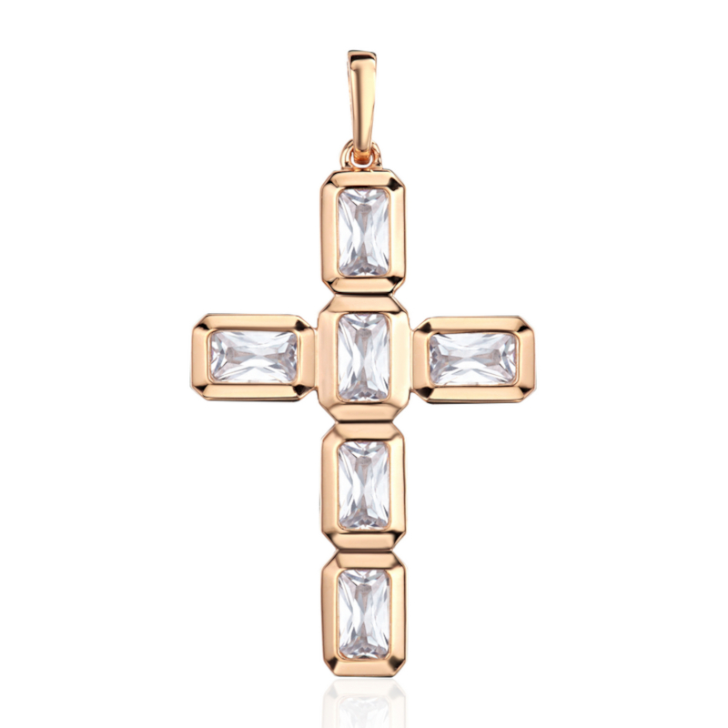 Подвеска "Крест" из красного золота 585 пробы с фианитами 01Р111137