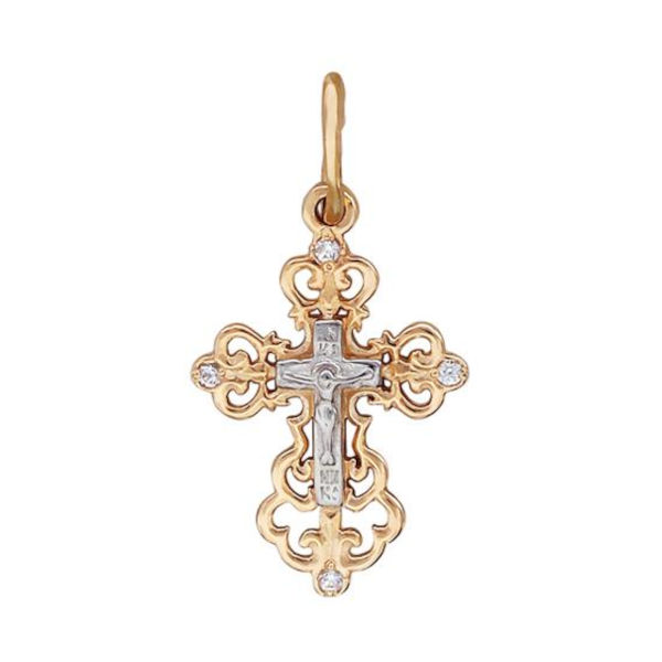 Крест нательный из красного золота 585 пробы с бриллиантами 01Р610768-17