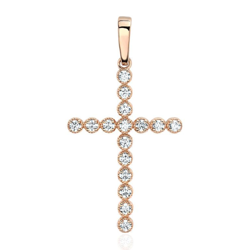 Подвеска "Крест" из красного золота 585 пробы с бриллиантами 01Р611119-17