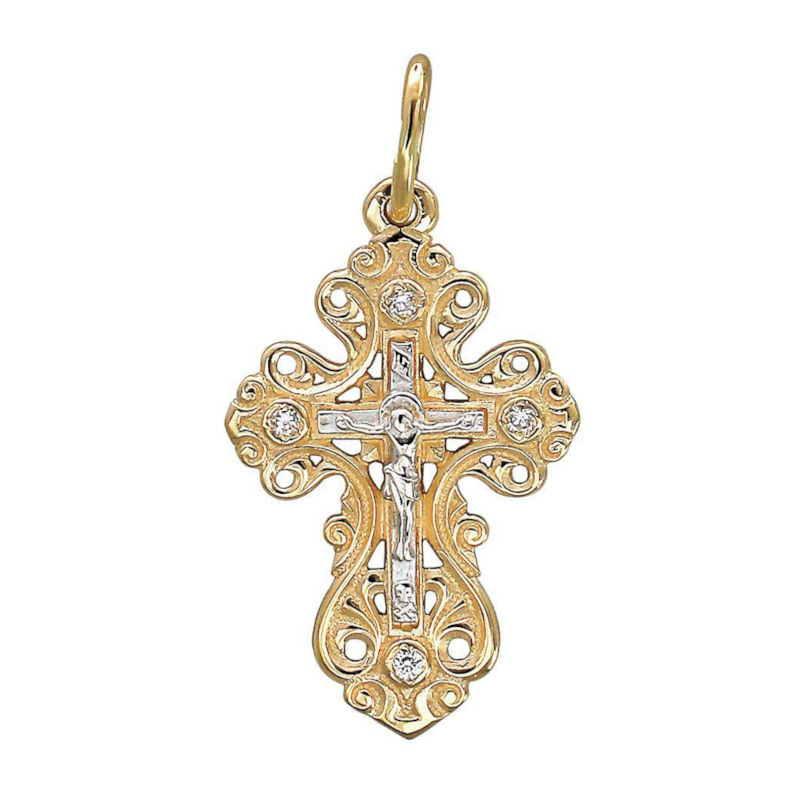 Крест нательный из желтого золота 585 пробы с бриллиантами 01Р630863-17