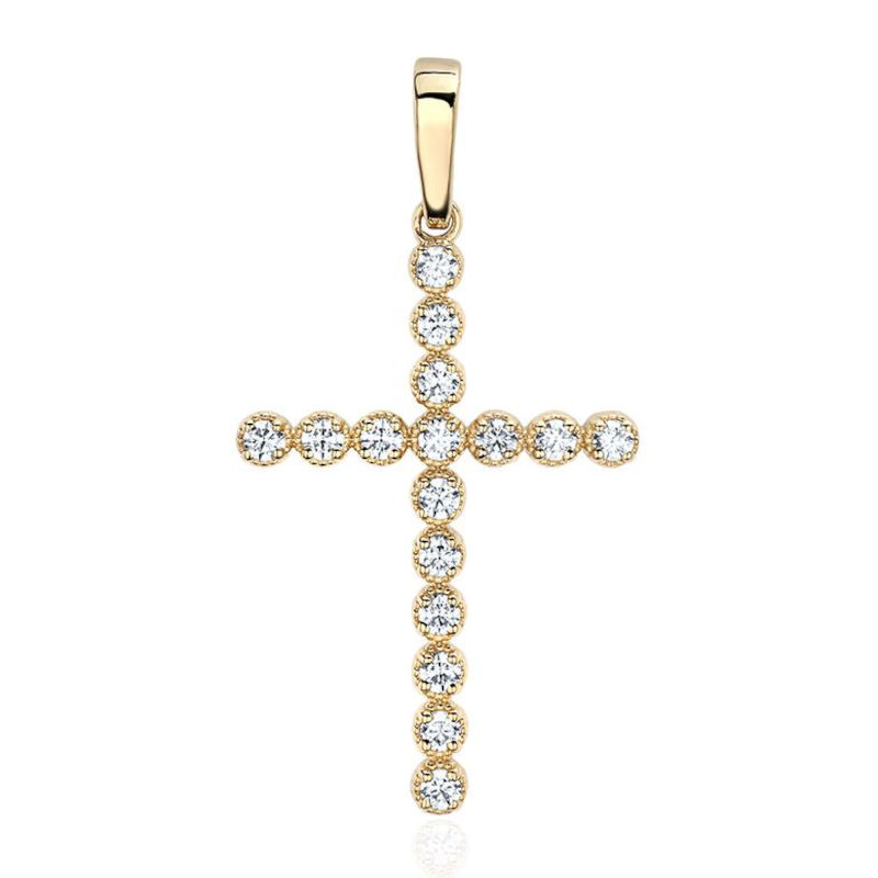 Подвеска "Крест" из желтого золота 585 пробы с бриллиантами 01Р631119-17