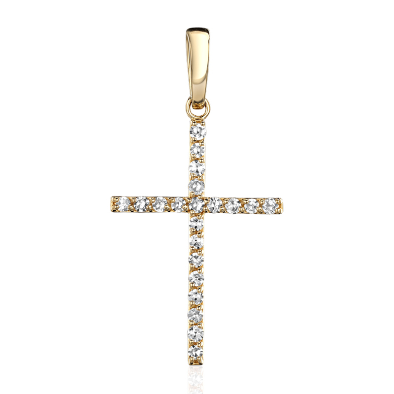 Подвеска "Крест" из желтого золота 585 пробы с бриллиантами 01Р631125-17