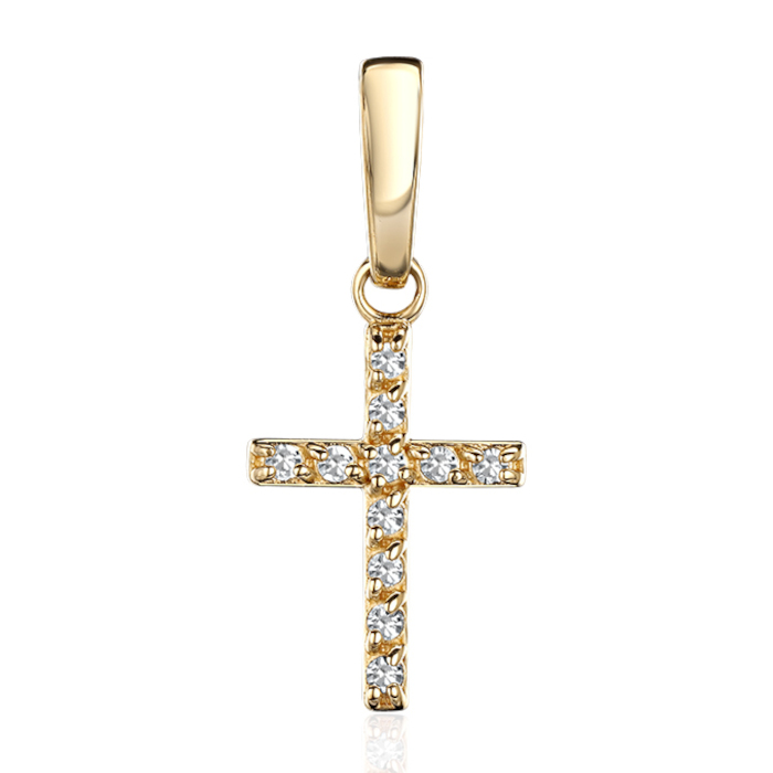 Подвеска "Крест" из желтого золота 585 пробы с бриллиантами 01Р631126-17