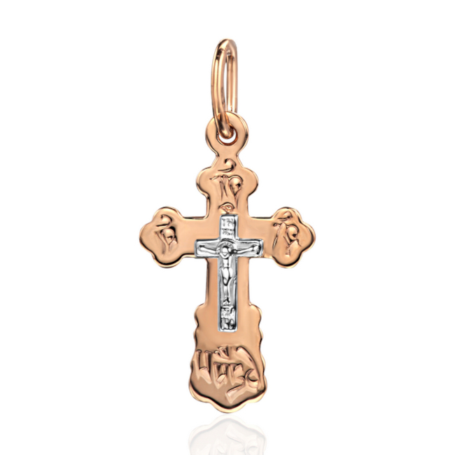 Крест нательный из комбинированного золота 585 пробы без вставок 01Р760665