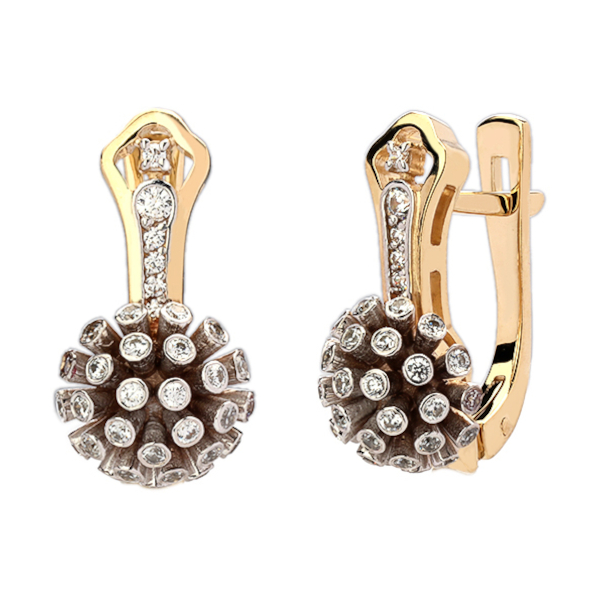 Серьги из комбинированного золота 585 пробы с фианитами 01С1613506Ж