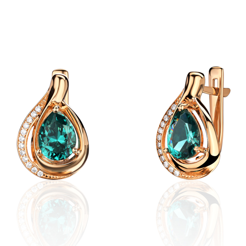 Серьги из красного золота 585 пробы с наносинтал турмалинами и фианитами 01С2115348-2