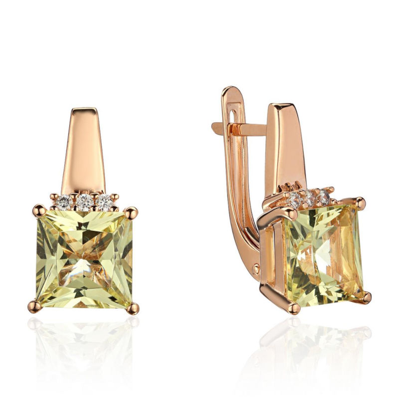 Серьги из красного золота 585 пробы с наносинтал гелиодорами и фианитами 01С2115472-5