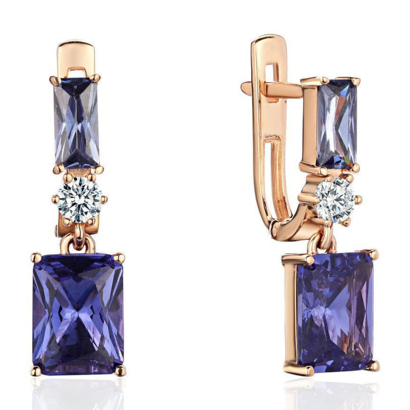 Серьги из красного золота 585 пробы с наносинтал танзанитами и фианитами 01С2115762-5