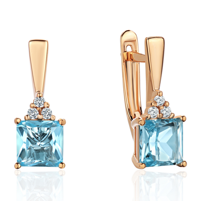 Серьги из красного золота 585 пробы с топазами и фианитами 01С3115413-1