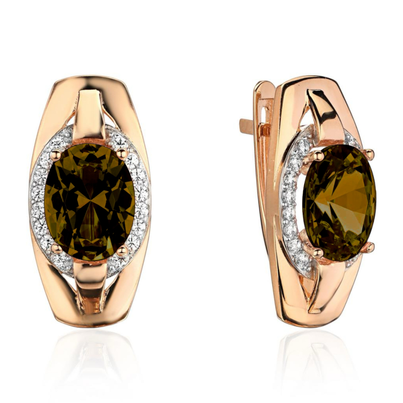 Серьги из красного золота 585 пробы с раух-топазами и фианитами 01С3115471Р-4