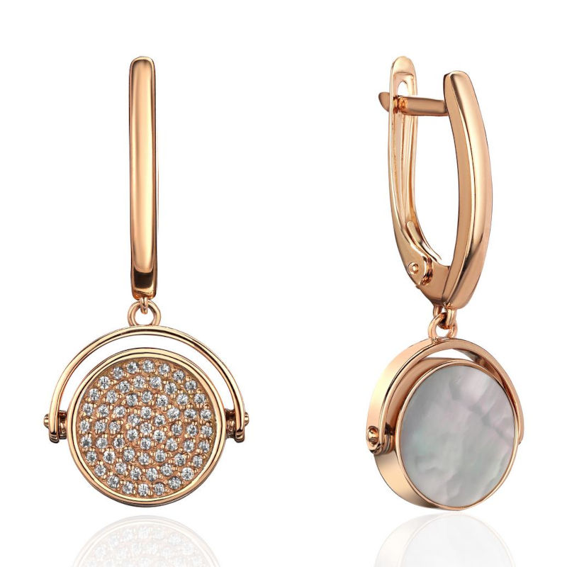 Серьги из желтого золота 585 пробы с перламутром и фианитами 01С4315070-2
