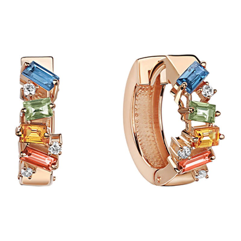Серьги из красного золота 585 пробы с сапфирами и бриллиантами 01С6115501-2
