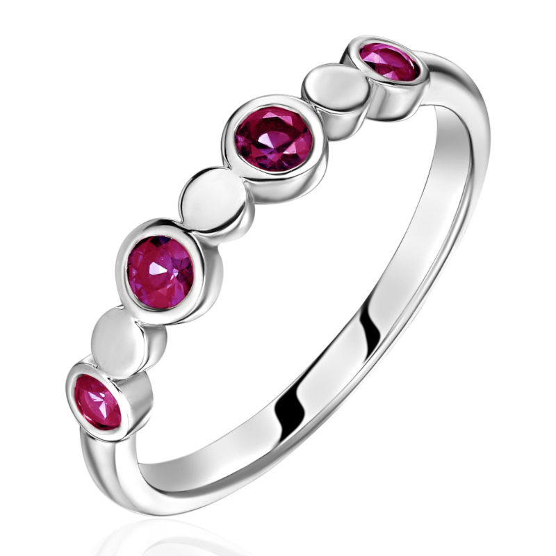 Кольцо из белого золота 585 пробы с рубинами 01К5215452-3