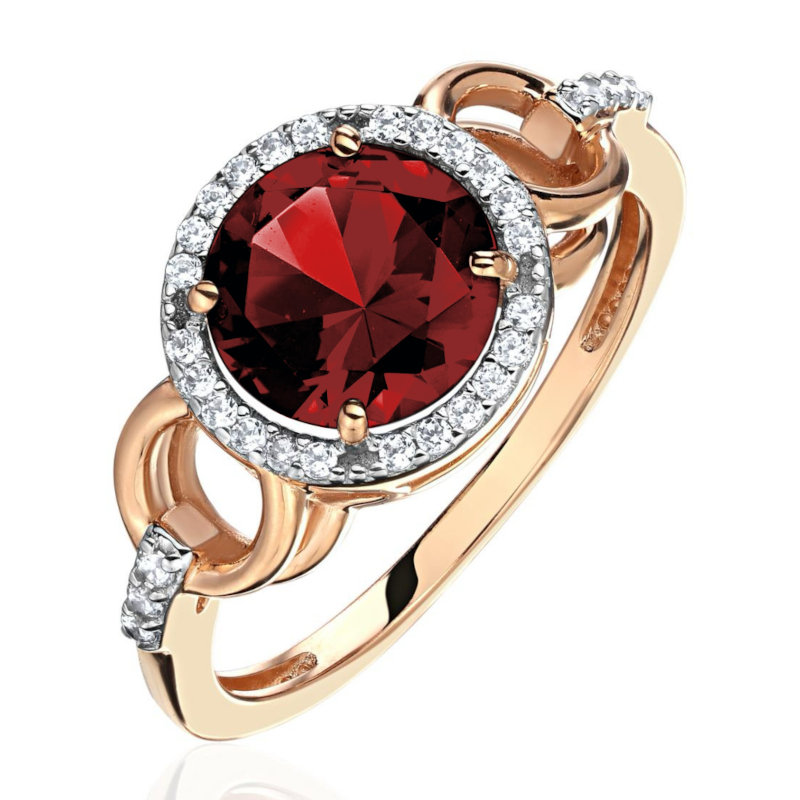 Кольцо из красного золота 585 пробы с гранатом и фианитами 01К3116435-1