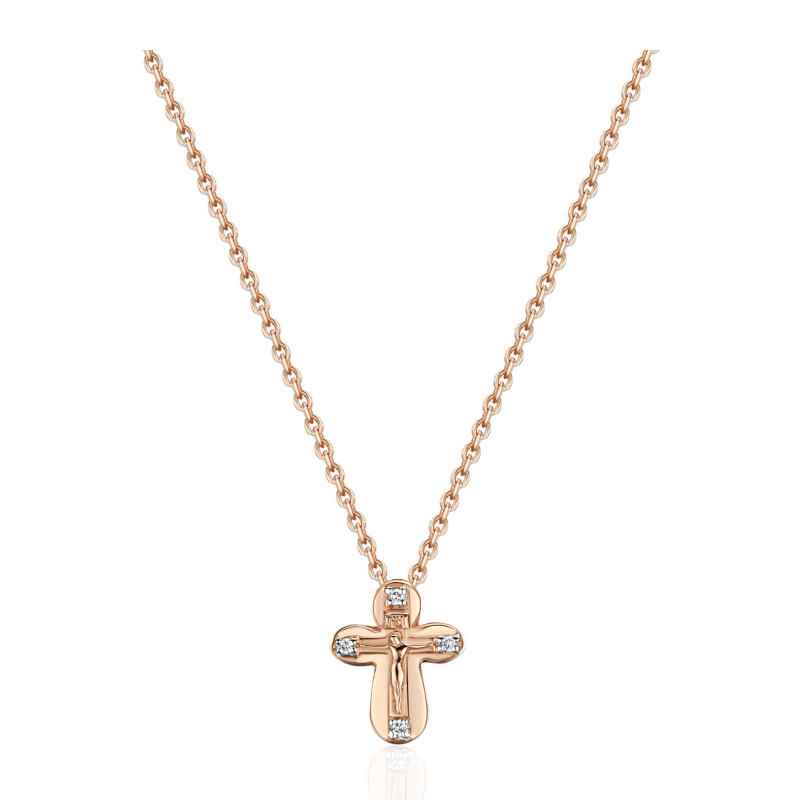 Колье "Крест" из красного золота 585 пробы с бриллиантами 01Л612436Р