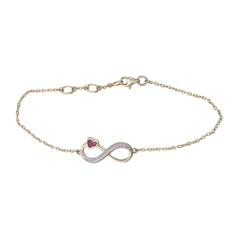 Браслет из желтого золота 585 пробы с синт. рубинами и фианитами 01Б232504-1