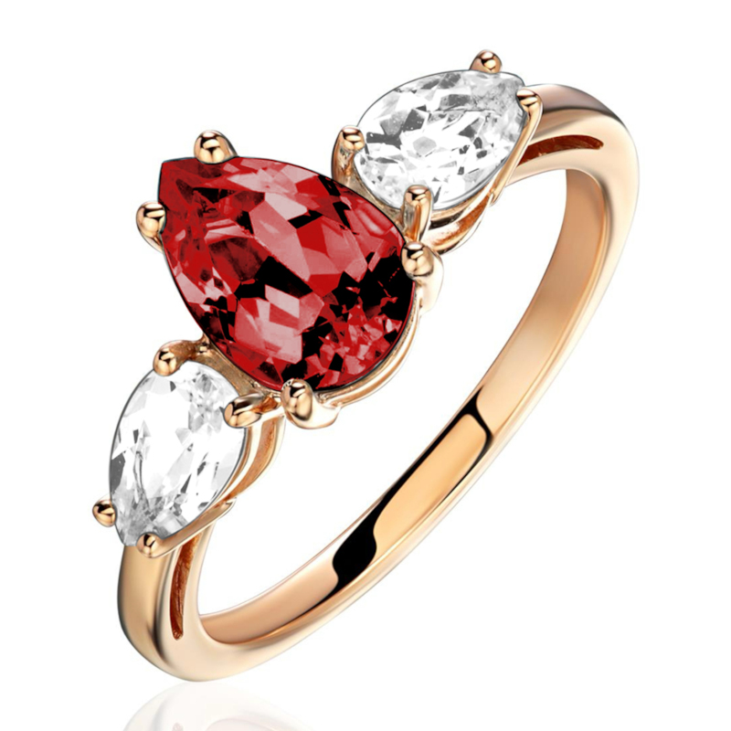 Кольцо из красного золота 585 пробы с гранатом и фианитами 01К3116482-4