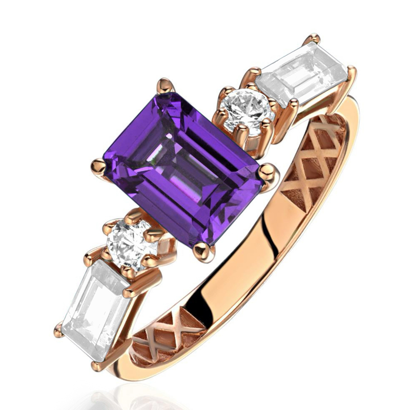 Кольцо из красного золота 585 пробы с аметистом и фианитами 01К3115762-6