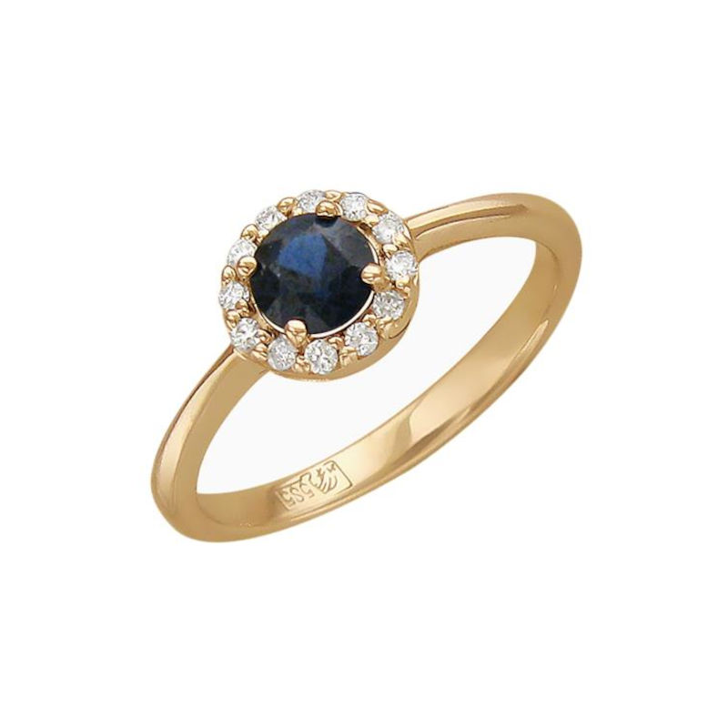 Кольцо из красного золота 585 пробы с сапфиром и бриллиантами 01К616978-1