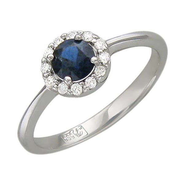 Кольцо из белого золота 585 пробы с сапфиром и бриллиантами 01К626868-1