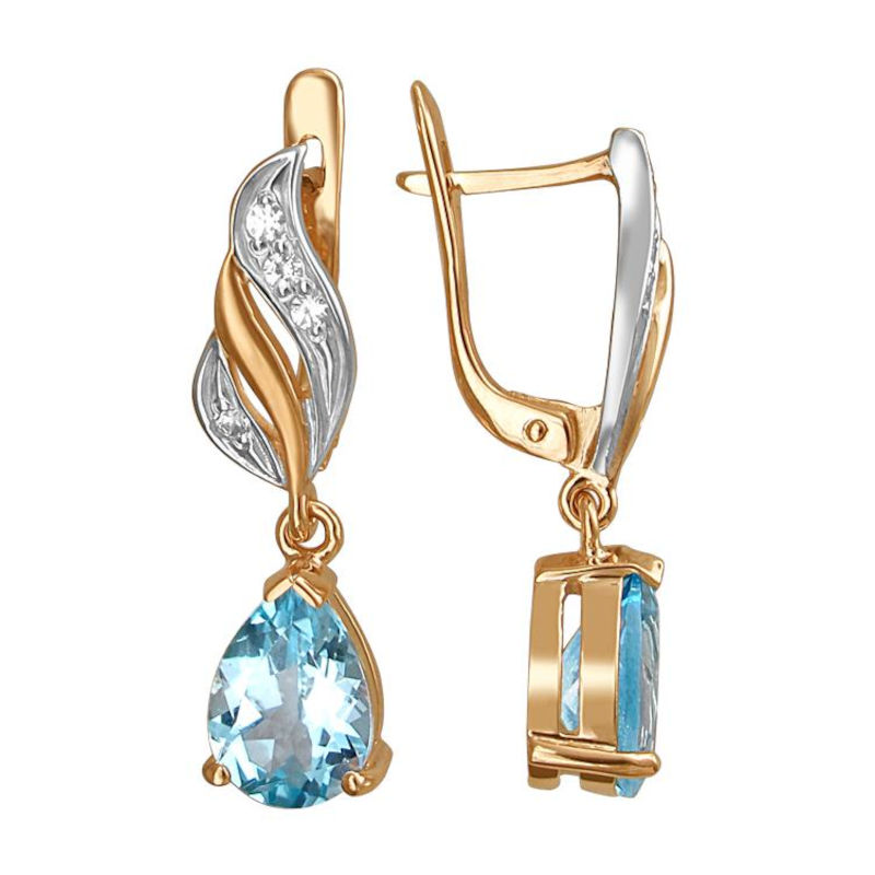 Серьги из красного золота 585 пробы с топазами и фианитами 01С311468-2