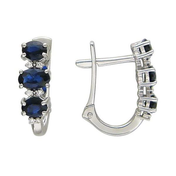 Серьги из белого золота 585 пробы с сапфирами и бриллиантами 01С626329-2