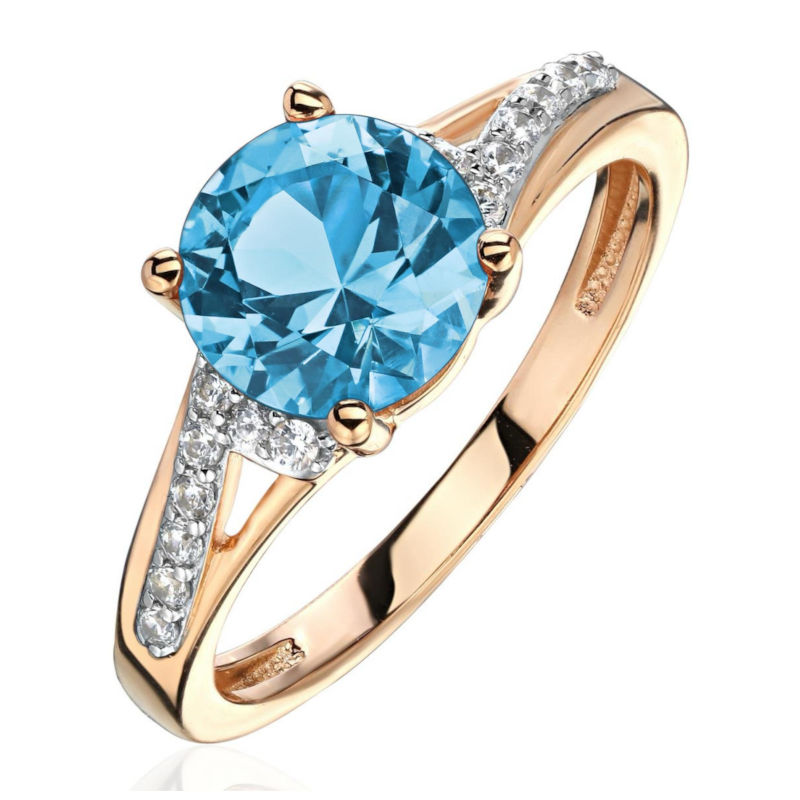 Кольцо из красного золота 585 пробы с топазом и фианитами 01К3115367Р-2