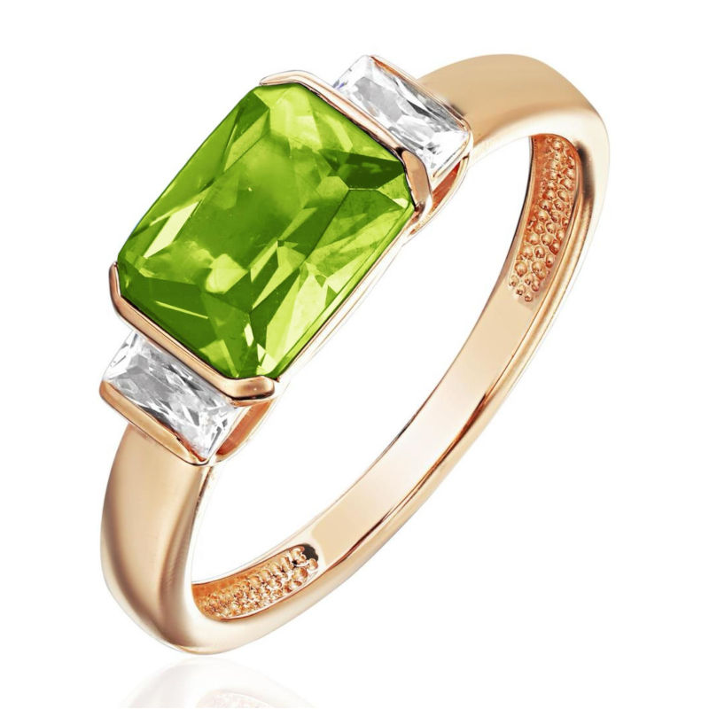 Кольцо из красного золота 585 пробы с хризолитом и фианитами 01К3116532-4