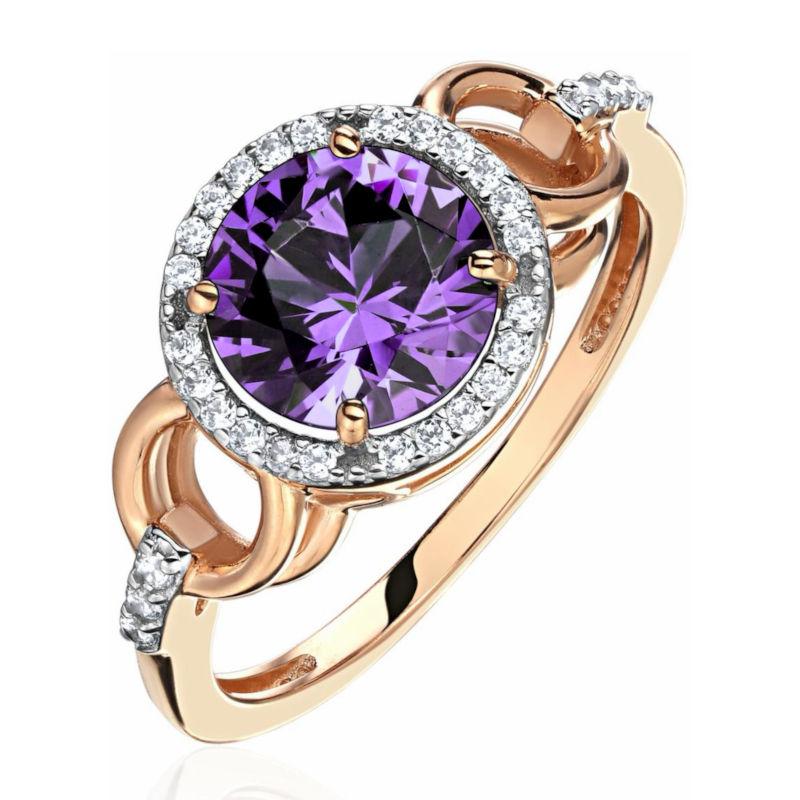 Кольцо из красного золота 585 пробы с аметистом и фианитами 01К3115335-3