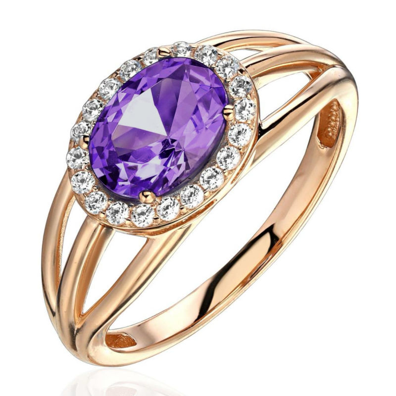 Кольцо из красного золота 585 пробы с аметистом и фианитами 01К3115427-4