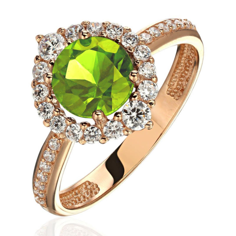 Кольцо из красного золота 585 пробы с хризолитом и фианитами 01К3116531-5