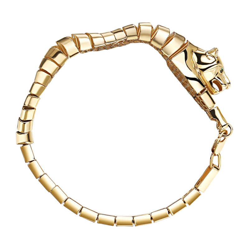 Браслет "Тигр" из желтого золота 585 пробы с наноизумрудом 01Б233577-1