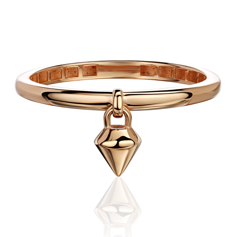 Кольцо из красного золота 585 пробы без вставок с подвеской – ваш акцент на индивидуальность. Элегантное и лаконичное, оно притягивает взгляд и добавляет вашему образу нотку дерзости и утонченности.