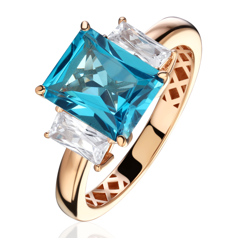 Кольцо из красного золота 585 пробы с наноситал топазом и фианитами 01К2115383-6